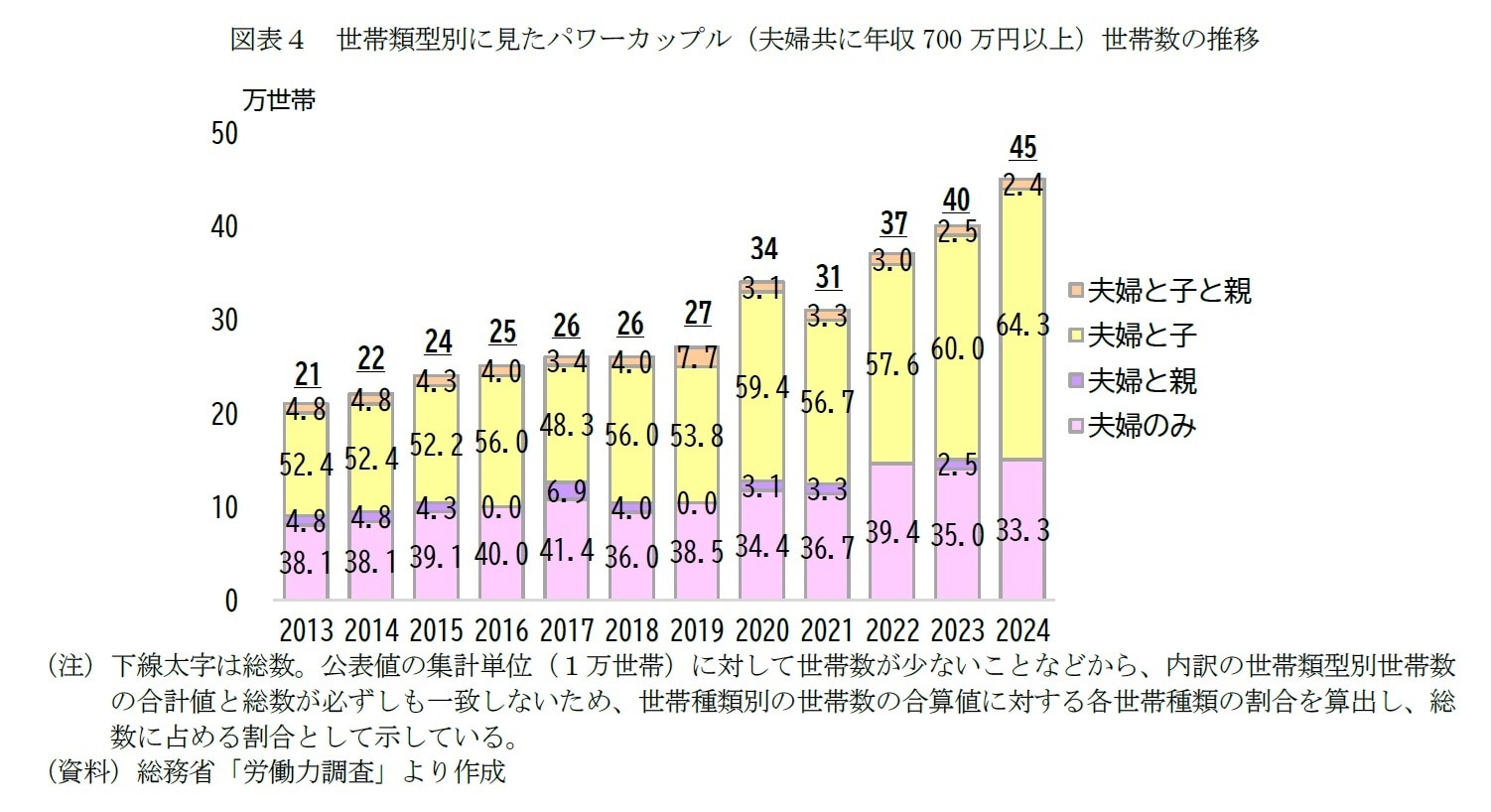 (出典:ニッセイ基礎研究所『パワーカップル世帯の動向-2024年で45万世帯に増加、うち7割は子のいるパワーファミリー』)
