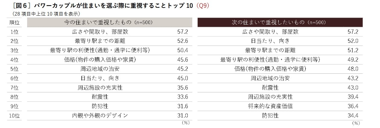 (出典:プレスリリース (株)大京、(株)穴吹工務店『パワーカップル500人に聞く、住まいと暮らしの価値観調査』)