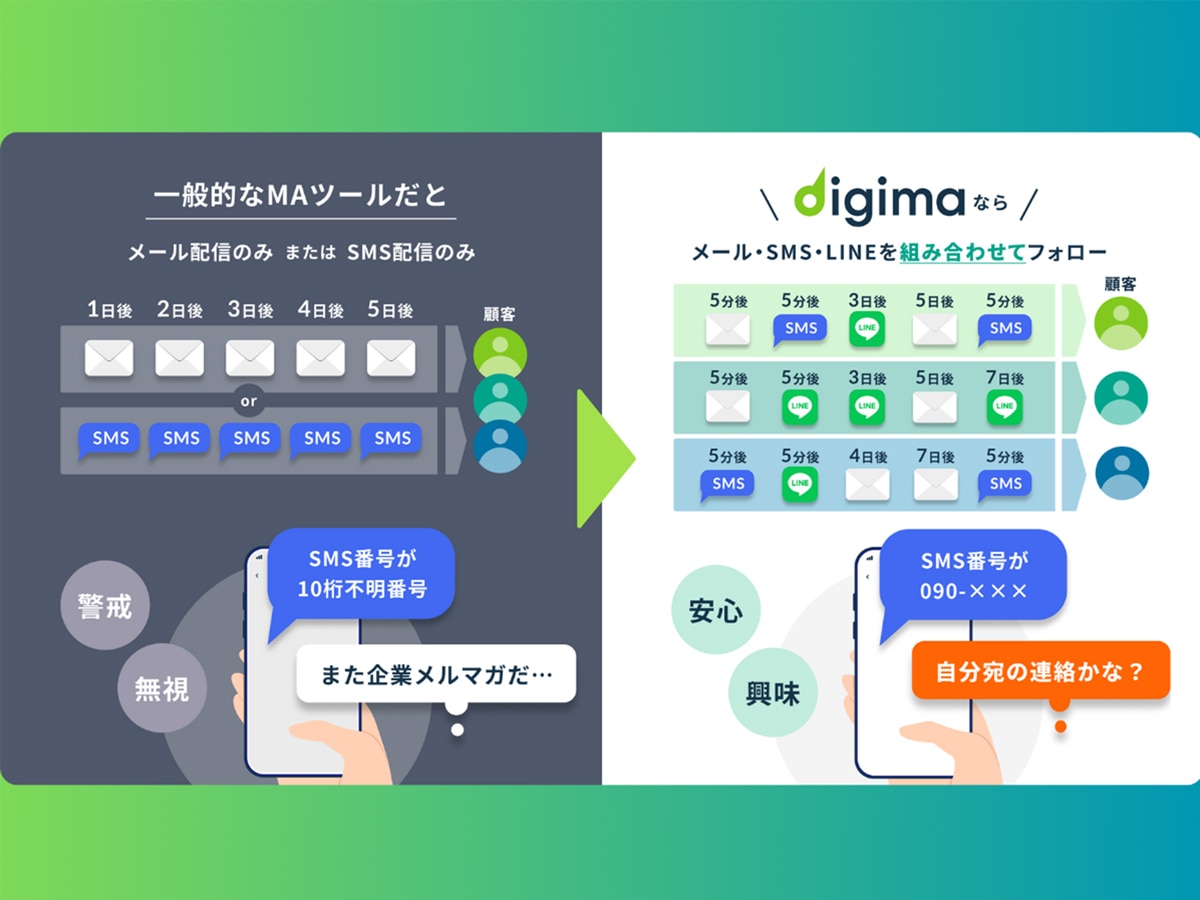 Digimaは導入後も安心いただける、成果直結の機能と充実したサポートが強みです。