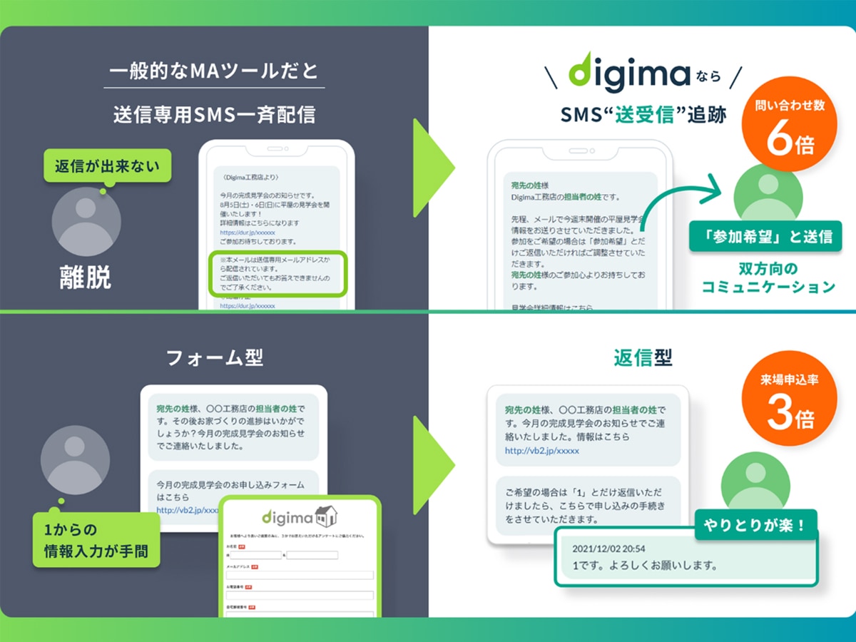 単なる機械的な配信ではなく、返信・応答を前提とした設計と、検討状況に合わせた「個別対応のようなメッセージ」により、見込み客から返信がもらえる「関係構築型の接点」をつくります。