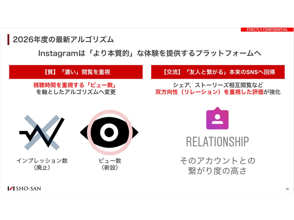 2026年のInstagramは「ビュー数(視聴の質)」と「リレーションシップ(友人との交流回帰)」を重視する方向に大きく変化しました。
